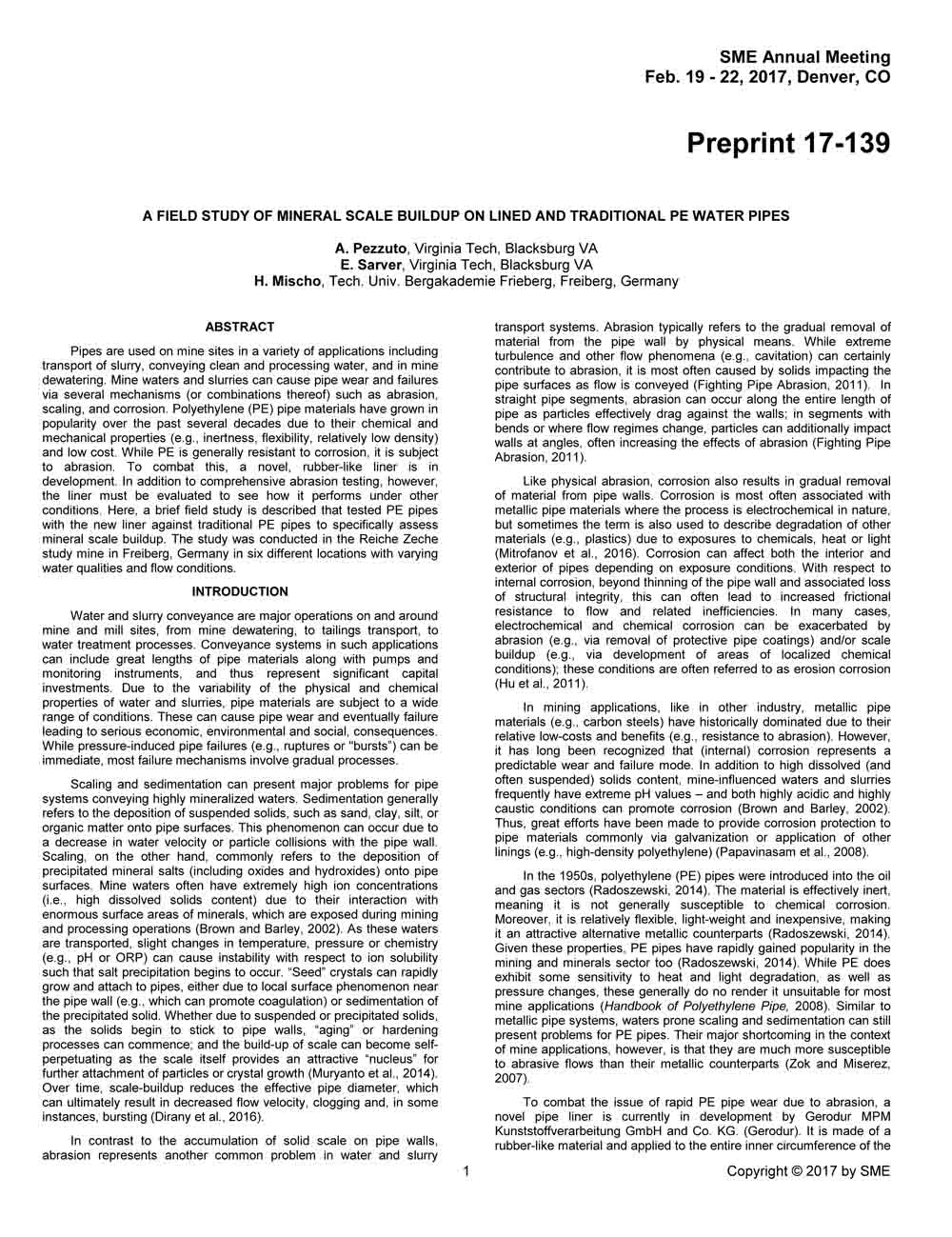 A. Pezzuto, E. Sarver, H. Mischo