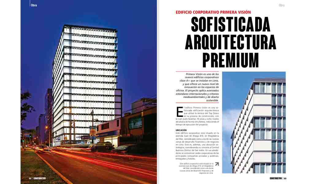 Primera Visión es uno de los nuevos edificios corporativos clase A+ que se instalan en Lima, y que ofrece un nuevo nivel de innovación en los espacios de oficina. El proyecto aplica avanzados estándares internacionales y criterios medioambientales y de diseño sostenible.