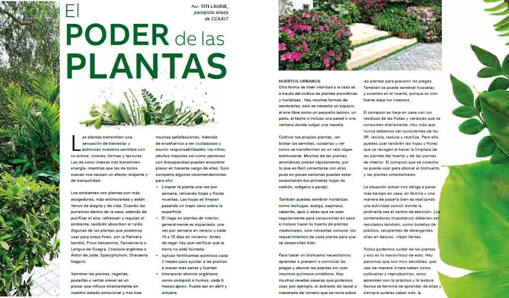 Las plantas transmiten una sensación de bienestar y estimulan nuestros sentidos con su aroma, colores, formas y texturas. Las de color intenso nos transmiten energía, mientras que las de tonos suaves nos causan un efecto relajante y de tranquilidad.