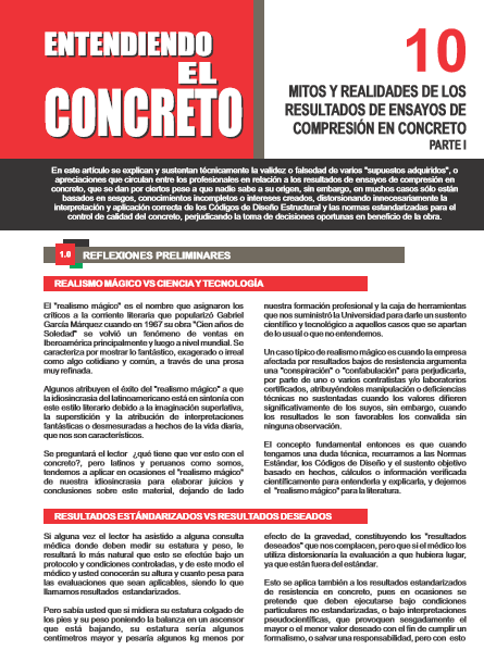En este artículo se explican y sustentan técnicamente la validez o falsedad de varios "supuestos adquiridos", o apreciaciones que circulan entre los profesionales en relación a los resultados de ensayos de compresión en concreto, que se dan por ciertos pese a que nadie sabe a su origen, sin embargo, en muchos casos sólo están basados en sesgos, conocimientos incompletos o intereses creados, distorsionando innecesariamente la interpretación y aplicación correcta de los Códigos de Diseño Estructural y las normas estandarizadas para el control de calidad del concreto, perjudicando la toma de decisiones oportunas en beneficio de la obra.