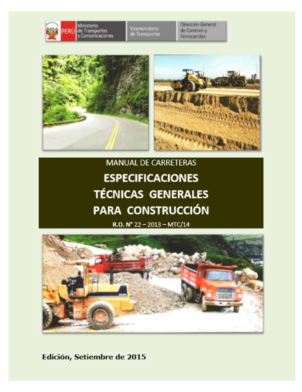 El Manual de “Especificaciones Técnicas Generales para Construcción” es de carácter general y responde a la necesidad de promover la uniformidad y consistencia de las partidas y materiales que son habituales en proyectos y obras viales.