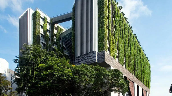 Arquitectura verde, filosofía de la arquitectura que aboga por las fuentes de energía sostenibles, la conservación de la energía, la reutilización y la seguridad de los materiales de construcción, y la ubicación de un edificio teniendo en cuenta su impacto en el medio ambiente.