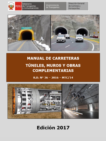 El Manual de Carreteras: Túneles, Muros y Obras Complementarias, tiene por objeto brindar los criterios técnicos que se deben aplicar en la fase de factibilidad, estudio definitivo, ejecución del proyecto, operación y mantenimiento de los túneles, muros y obras complementarias, para la gestión de carreteras en tramos rurales y urbanos.